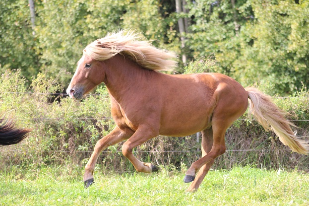 Leiftur ist erstens ein Nachkomme von meiner Blesa, die nach wie vor mein absolutes Lieblingspferd ist, und zweitens entspricht er meinem Typ Pferd schon sehr gut. Er ist groß und kräftig gebaut, hat einen hervorragenden Charakter und zeigt sehr viel lockeren Tölt in den Übergängen.
